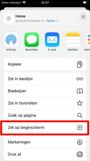 Stap 2: Scroll naar beneden en selecteer ‘Zet op beginscherm’: