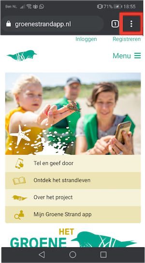 Stap 1: Open de website in Google Chrome en druk op het rood omcirkelde icoon: